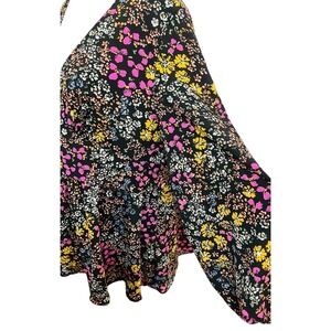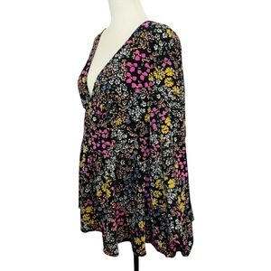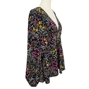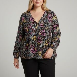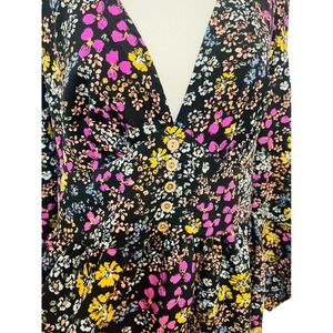 Shein Curve Floral Blouse Long Sleeve V Neck Button Front 1XL