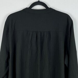 Shein Curve Top Blouse Size 4XL Black 3/4 Sleeve V Neck Band Collar Pocket