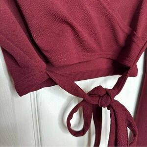 Shein EZwear Bell Sleeve Self-Tie Crop Top Burgundy Size Medium