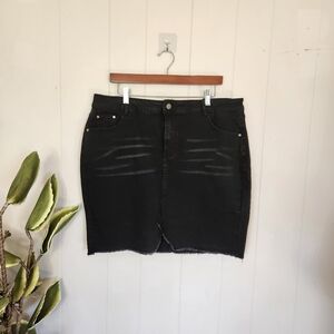 Shein Faded Black Mini Denim Jean Skirt Stretchy High Waisted Rise Western Boho