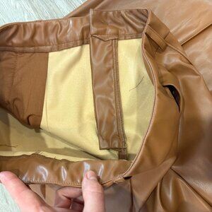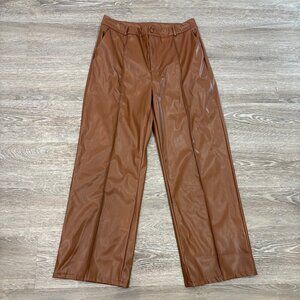 Shein Faux Leather Brown Straight Leg High Waist Pants sz L
