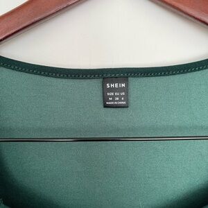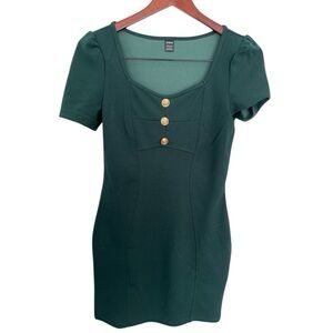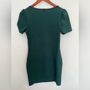 This chic green bodycon mini dress from shein is perfect for work or cocktail events. It features a flattering scoop neckline and stylish puff short sleeves, offering a sophisticated and modern look. EUC size medium