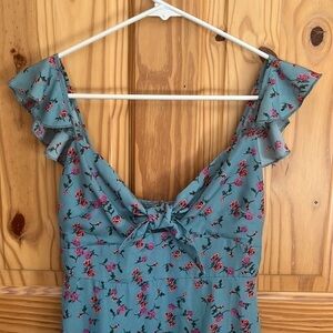 Shein Knot Front Ruffle Trim Floral Dress