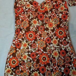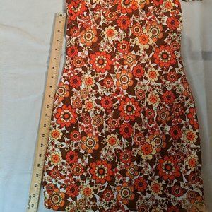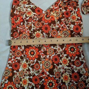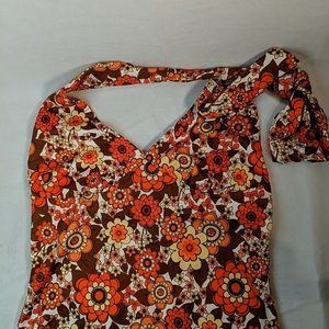 Shein Orange Brown Retro Floral Flower Halter Sun Dress Summer V-neck women's XS
