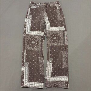 Shein Pants Womens Small 27x27 Brown Geometric Patchwork Straight Leg Y2K Style