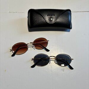 Shein Set of Two Sunglasses Gold Frame One Black & One Brown Lens Oval Glasses