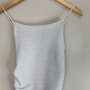 Shein Shimmer Silver Metallic Mini Dress Side Ruched Square Neck Spaghetti XSP