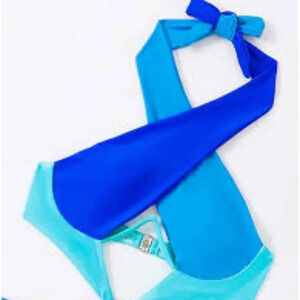 colorful, colorblock, hollow out, crisscross front, halter straps, tie back, backless, underwire, summer, sexy, resort, swimming, vacay, vacation, aqua, cerulean, turquoise,