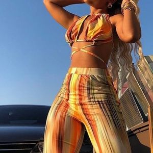 Shein Tie-Dye Halter Top & Flare Pants Set – XS