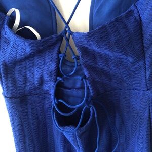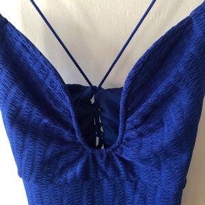 Shein Vcay dress with spaghetti straps, , low cut front with crisscross tie ups At back of dress and has lined cups. Dress it up with white dress shoes or wear flat sandals, this dress is great for vacations. Add a little white sweater and small hand held purse and head off to sit on the balcony of your local reatauRant.