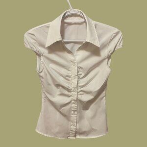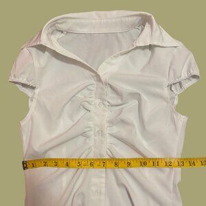 Shein White Ruched Button-Down Short Sleeve Blouse (Petite XXS)