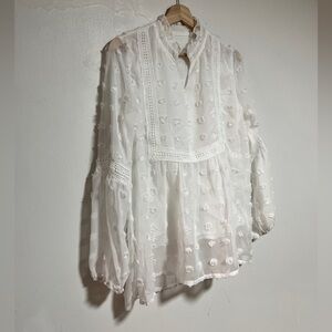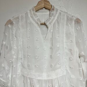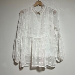 Shein White Textured Floral Dot Long Sleeve Blouse - Size M