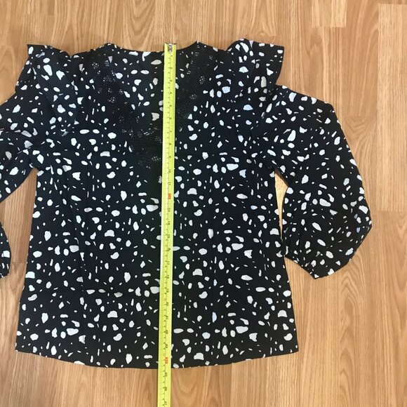 Shein Womens Black & White Polka Dot Blouse With Ruffle Sleeves Size M