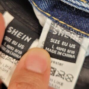 Shein Women's Blue & Black Denim Casual Ripped Cut Out Two Jeans Shorts Size L