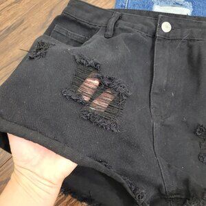 Shein Women's Blue & Black Denim Casual Ripped Cut Out Two Jeans Shorts Sz Large