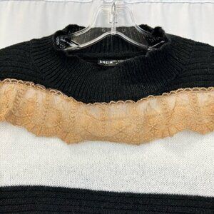 Shein Womens Sweater Dress Multicolor Striped Lace Crew Neck Long Sleeve Knit L