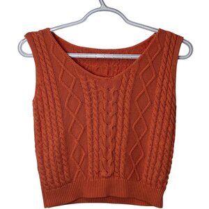 Shein orange cable knit sleeveless cropped sweater vest size 2
