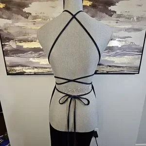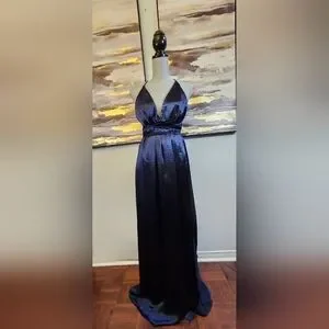 Super pretty evening dress that unfortunately just did not sit right on me. This dress has a very high slit at the front and has a lot of give.