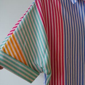 Shein rainbow pink orange blue green stripe batwing top M 6 Medium S SMall SM 4