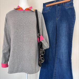 Shein flare or bell bottom jeans for all seasons. Classic indigo blue, full rise, wide leg bottom. Size 30 waist, 32 leg. Excellent used condition with no stains, wear or damage detected. The new look in jeans for your denim wardrobe update. Wear with crop top or linen shirt for summer wear, add sweater and jackets for cool weather. Style it your way with add-ons from Our Closet for a whole new look (some suggestions shown, more available, all listed and priced separately). Style and value for you from Lemon Squeezy Shop🍋
