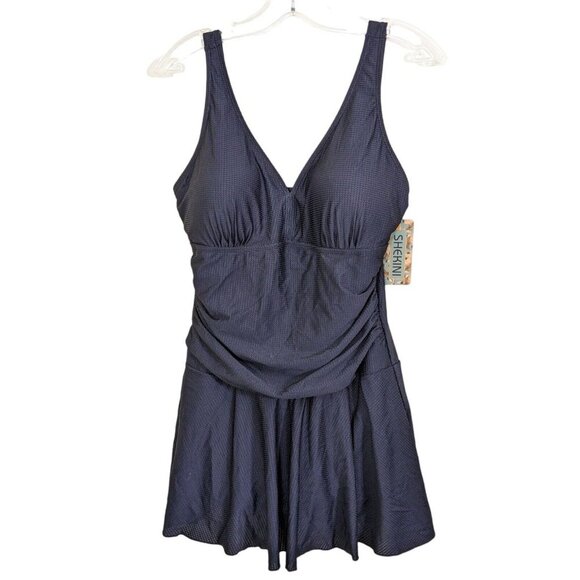 Shekini Womens Swim Dress Black Size XL Slimming Textured One Piece Swim NEW