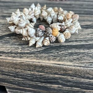 Beautiful shell bracelet featuring natural cream and brown tones. Perfect for beach lovers.