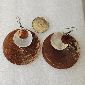 Shell Discs Metallic Copper Color Earrings Dangle Beach Boho Tribal Tropical