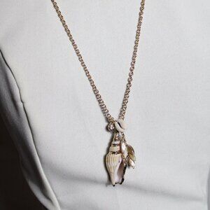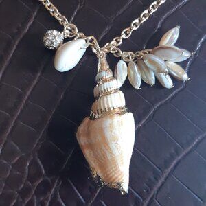 Shell Necklace 28" with Gold Tone Accents and Chain, Danglers