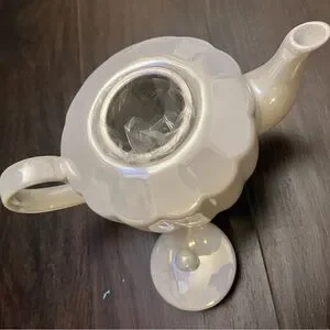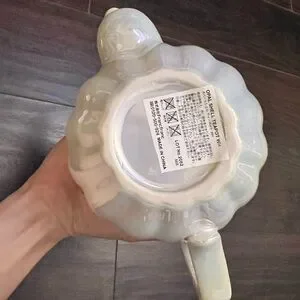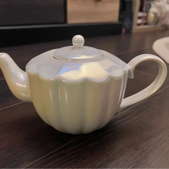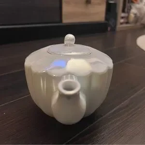 A Japanese brand - Franc Franc- known as their home ware. Charming cream teapot with a glossy finish. Perfect for tea time. With tea leaf filter. Comes with original paper box. Very unique looking tea pot, perfect for girls high tea. New and never use