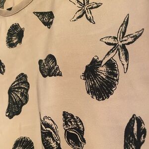 Black shell pattern on pale pink loose fitting top. Unbranded. Size XL. No damage except small stain on front, see last photo, due to the pattern, this is not very obvious.