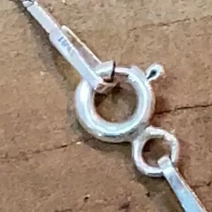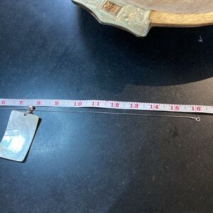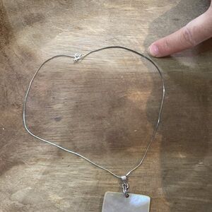 Shell pendant is approx 1.5” x 2.5” and the necklace is stamped . I tried to use a magnifier app to read what it is stamped with but it’s so teeny it’s impossible.