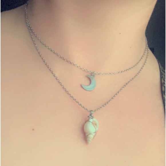Double boho rolo chain stainless steel choker. Shells have healing properties of aiding in mental clarity an decision making