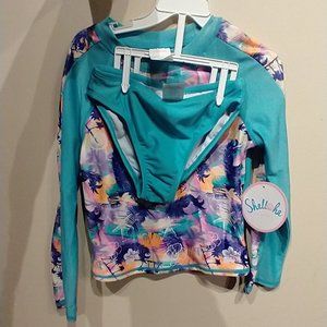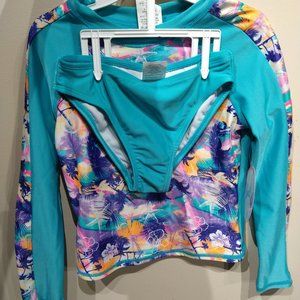 Shelloha Girls long sleeve rash guard with bottoms, UPF 50+, 2-Piece Swimwear