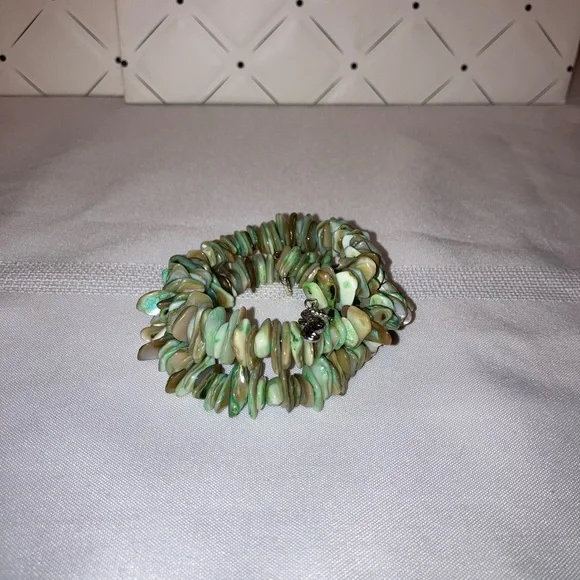 Homemade wrap coiled bracelet. Never worn. One of a kind piece. Without the need for a clasp, this bracelet is easy to put on and take off! This is made with shells! Detail: metal seahorse ends.