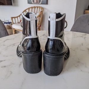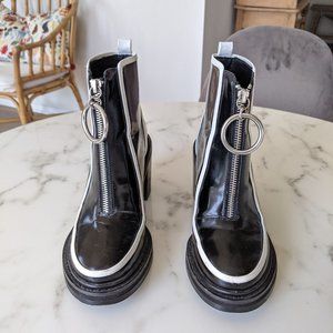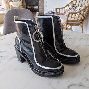 Super cool boots from Shellys London. Mod 60s vibes with a hint of Y2K with the O-ring zipper. In great used condition - only wore a couple of times. Some light scuffing, like as shown, but nothing major.