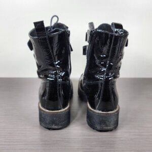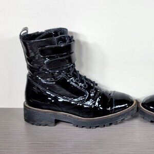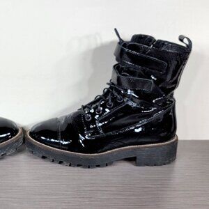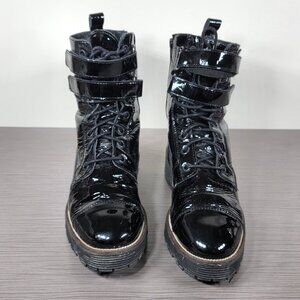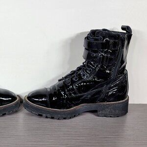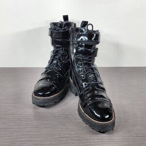 Shellys London Tyra Combat Boots Black Patent Leather, Womens Size 38 (US 7.5-8)