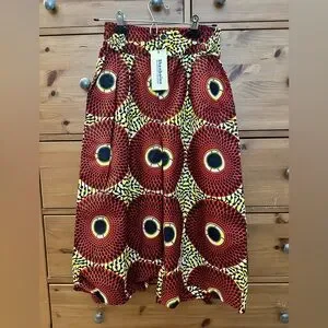 This piece is a like new women’s wide leg capri. The waistband has elastic panels at the sides and flat band at front and back. Zipper and double button closure at front waist as well as front side pockets. Please see photos for lay flat measurements