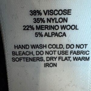 • 38% Viscose / 35% Nylon / 22% Extrafine Merino Wool / 5% Alpaca
