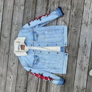 Sherpa Lined Levis Denim Rose Jean Jacket Large