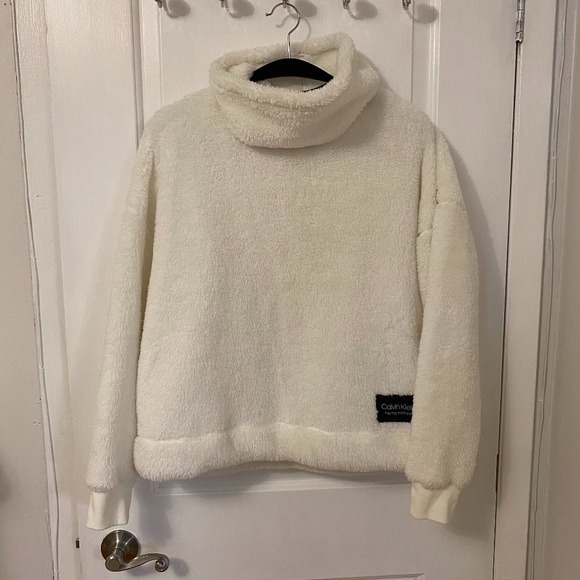 Calvin Klein white sherpa pullover with turtle neck, very good condition never been worn