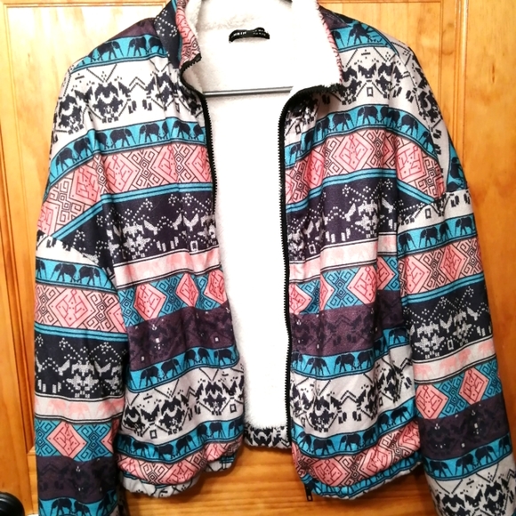 Shein Aztec graphic, Sherpa lined jacket, cropped. never worn, no imperfections, very comfortable.