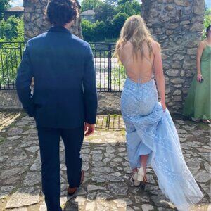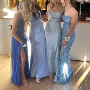 Sherri HIll 52338 - Multi layer floral scoop neck baby blue gown - worn once