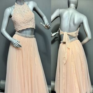 Sherri Hill (SIZE 4) Blush Pink Bedazzled 2-Pc Skirt Crop Dress