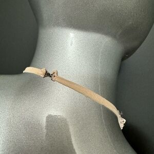 Size 4, fits a 26”-27” well. In great used condition, some minor wear to back tie fabric as shown. Theres minor makeup marking on the back string of halter (not noticeable when worn Just on back of neck).