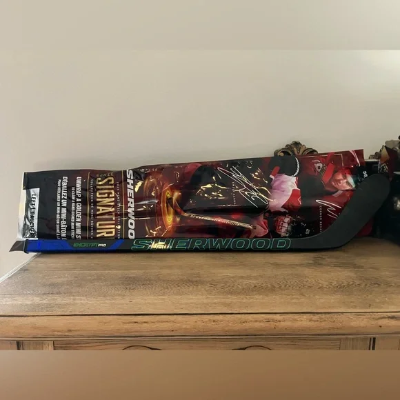 Sherwood hockey stick featuring a sleek black and green design. Perfect for hockey enthusiasts.