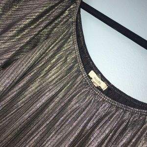 Sparkly off-the-shoulder flutter-sleeve top by boho brand Ecote. In a stretchy variegated ribbed knit with a chic swing fit featuring all over shimmer and short flutter-sleeves, exclusively available from UO.