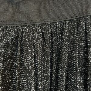 Black and silver shimmer skirt.Mesh over lining. Elastic waist. Get into the holiday spirit! Like new. Measurements in pics: waist and length