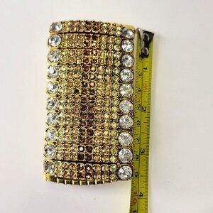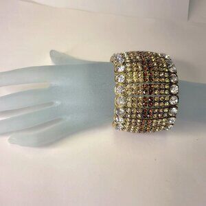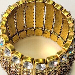 Shimmering Clear Rhinestone Sparkly Gold Tone Formal Thick Bracelet