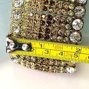 Shimmering Clear Rhinestone Sparkly Gold Tone Formal Thick Bracelet