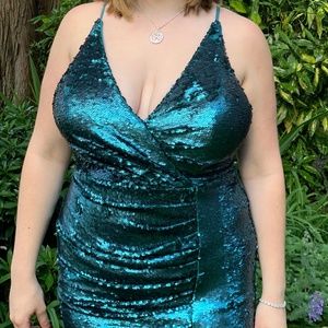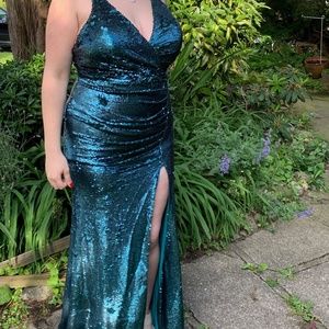 Reposhing this item I purchased from @thekvr. This stunning Portia & Scarlett teal sequin full length gown is a showstopper!!